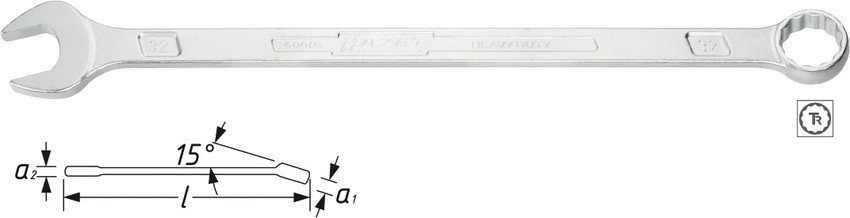 Extra dlouhý očkoplochý klíč se štíhlým tvarem od německého výrobce Hazet. Velikost 19 mm.