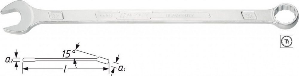 Extra dlouhý očkoplochý klíč se štíhlým tvarem od německého výrobce Hazet. Velikost 41 mm.