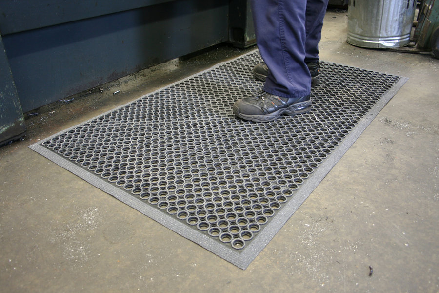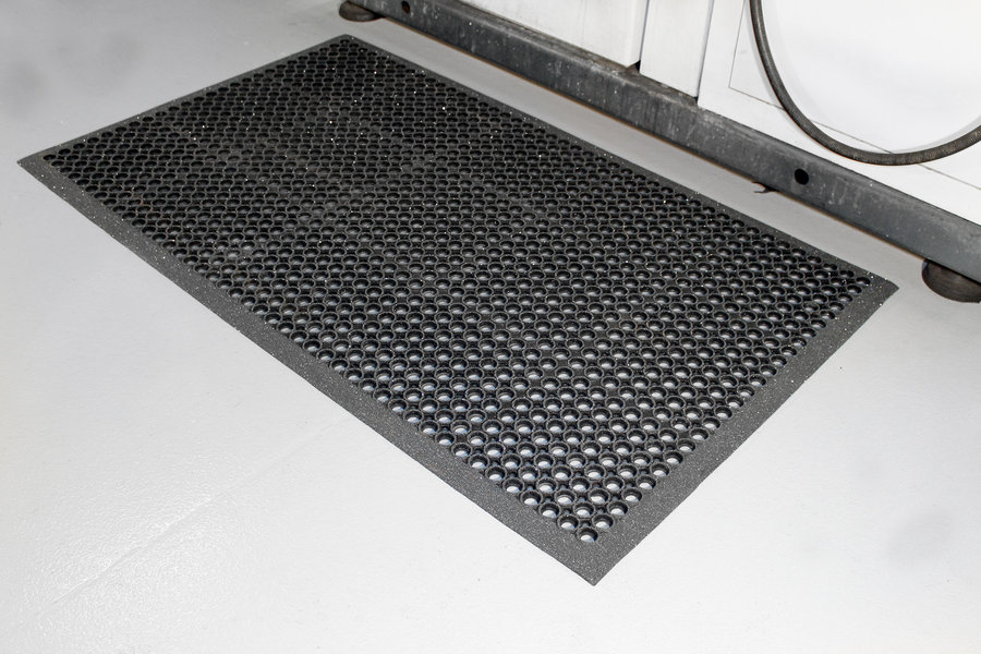 Průmyslová rohož vyrobená ze 100% nitrilové směsi. Pohodlný povrch rohože zmírňuje únavu způsobenou dlouhým stáním a také zajišťuje tepelnou izolaci. Povrchová úprava z karbid silikonu zabraňuje uklouznutí. Zkosené hrany rohože zabraňují zakopnutí. Otevřená struktura rohože umožňuje volný odtok tekutin.