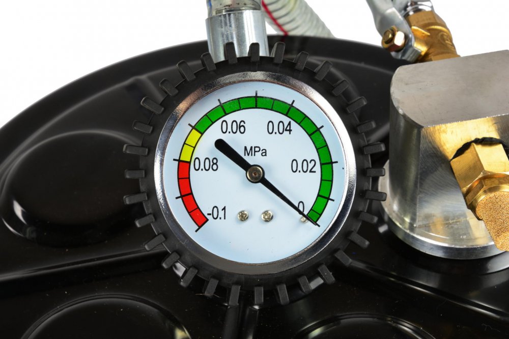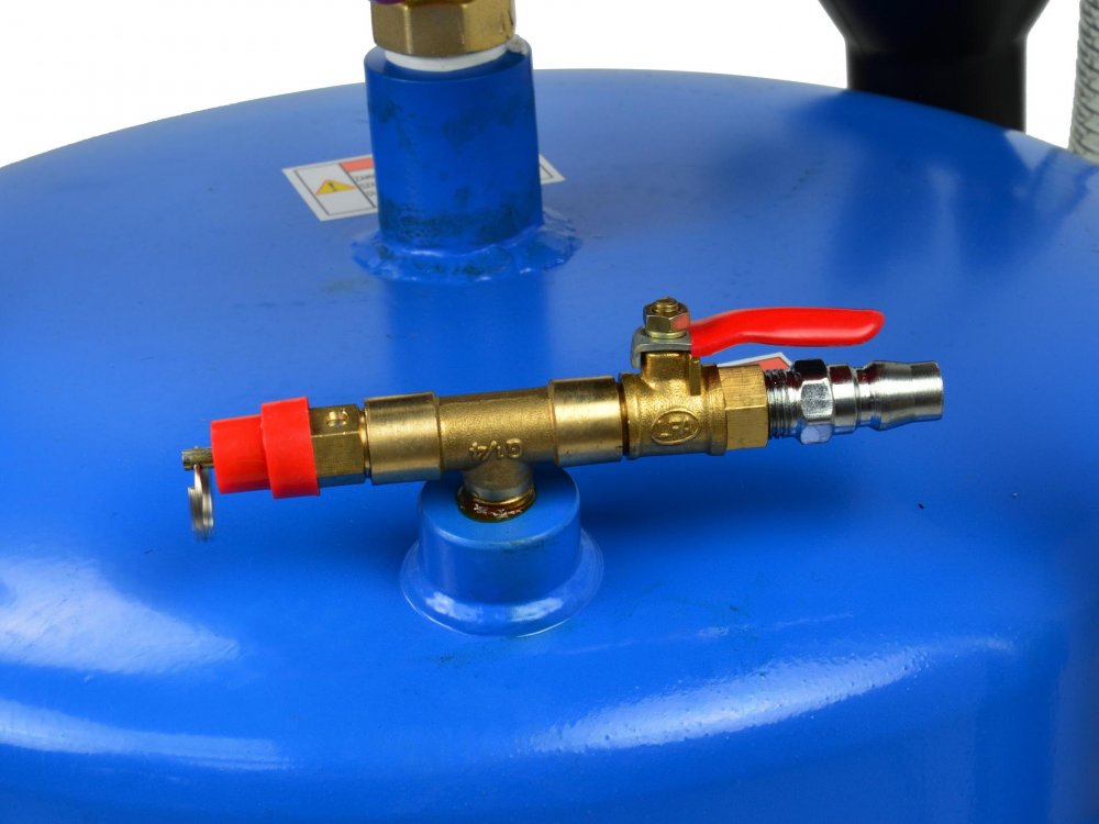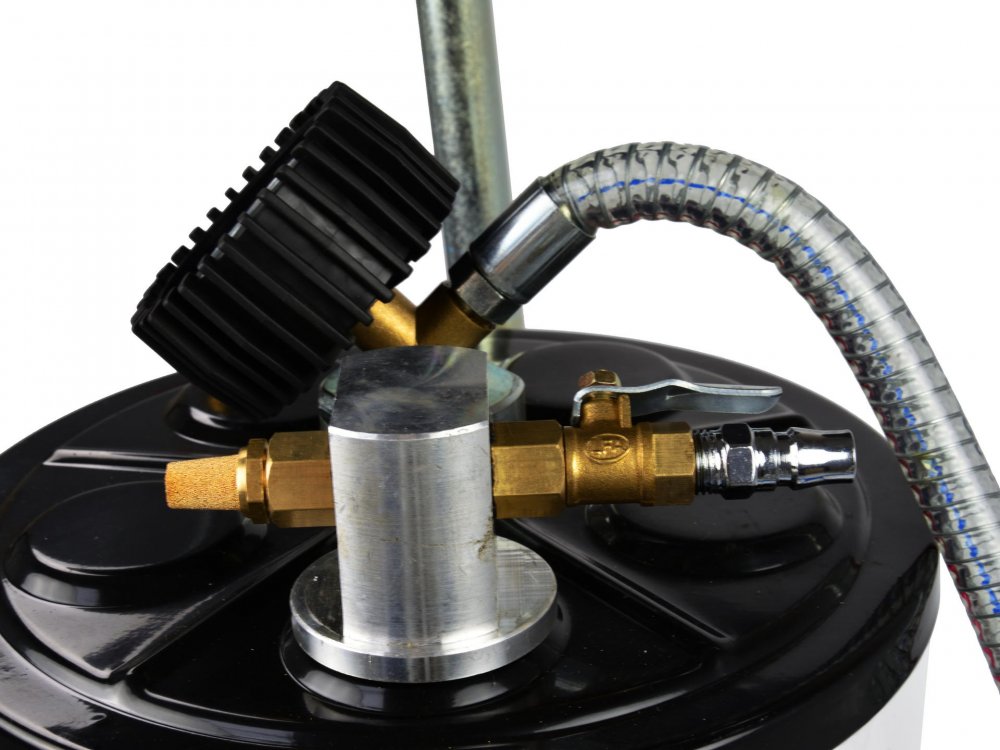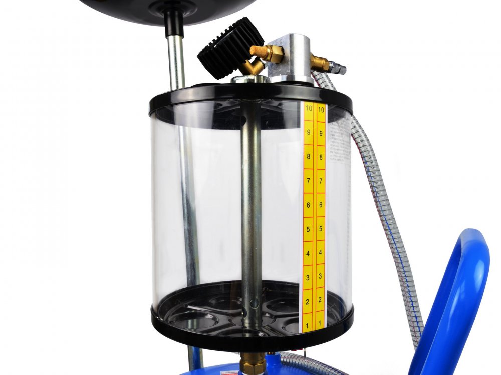 Jímka je vybavena odsáváním pomocí stlačeného vzduchu. V zásobníku se vytvoří podtlak a poté lze i bez trvalého napojení na stlačený vzduch odsávat olej pomocí pružné hadice a jednoho z pěti adaptérů.