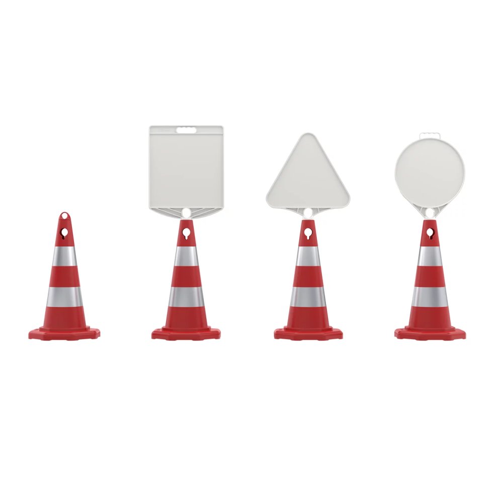 Kužel 75 cm je navržen pro maximální funkčnost v profesionálním provozu. I přes svou vyšší hmotnost zůstává snadno manipulovatelný a jeho kónický tvar dovoluje efektivní stohování, což šetří místo při transportu na korbách servisních vozů. Horní část kuželu je uzpůsobena pro osazení doplňkovými reflexními prvky nebo výstražnými LED světly, čímž lze radikálně zvýšit bezpečnost v noci či za mlhy. Tento model je ideálním řešením tam, kde lehčí kužely selhávají kvůli stabilitě.