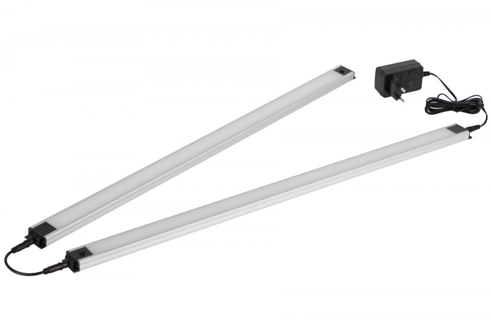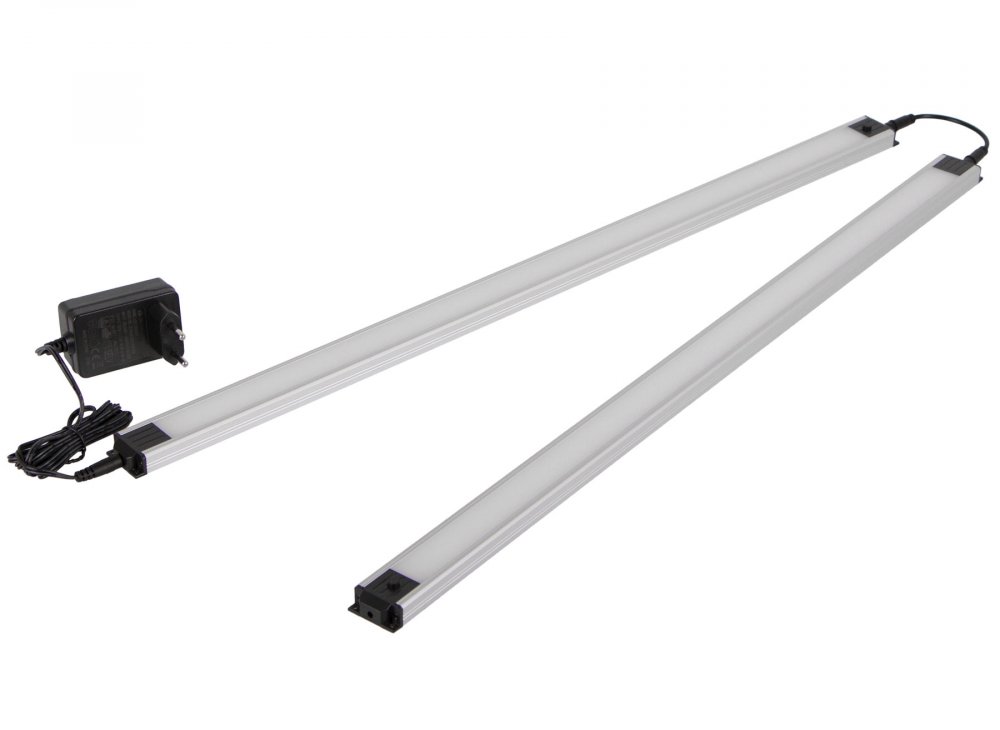 Balení obsahuje: 2 ks LED panelu, 1 ks adaptéru pro připojení do sítě a 1 ks propojovacího kabelu.