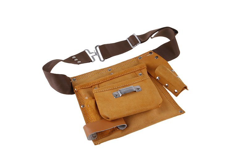 Nářaďový pás, PROFI - kvalitní silná kůže i zpracování - švy, 6 kapes, kůže / nylon, použití : k uložení nářadí a pomůcek, usnadňuje manipulaci a práci - snadné odkladání nářadí i opětovné uchopení, uložení materiálu - hřebíků, šroubů…, komfortní široký nastavitelný pás.
