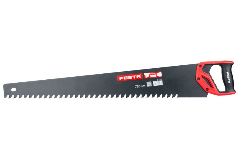 Ergonomická ABS rukojet s měkčenou TPR gumou. Tuhý ocelový list s břitovými destičky ze slinutých karbidů zaručující dlouhodobý řezný výkon. Počet osazených zubů: 34 Pracovní délka: 750mm Použití: profesionální pila pro řezání pórobetonových bloků.