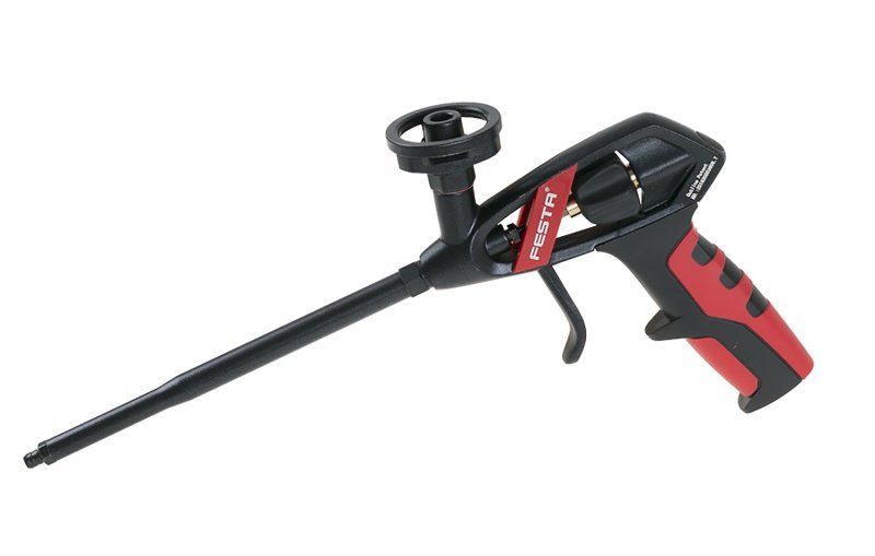 profesionální celokovová pistole na PU (polyuretanové) pistolové pěny s teflonovou povrchovou úpravou plynulá regulace množství pěny, citlivá spoušť pro přesné a pohodlné dávkování, plastové aplikační trubičky pro přesné nanesení pěny na požadované místo závit pro uchycení s teflonovou vrstvou pro snadnější čištění teflonová kulička ventilu, vyměnitelná tryska 38030