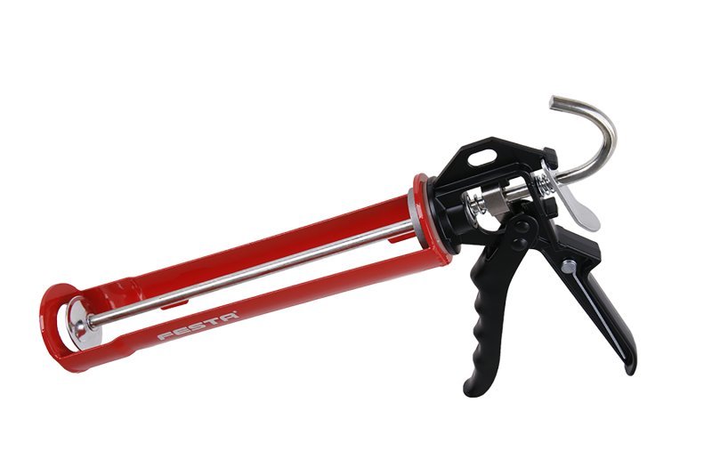 Vytlačovací pistole FESTA, PROFI, kvalitní zesílený a profilovaný ocelový rám i výtlačný a pojezdový mechanismus, uzavřené zakončení rámu pistole, kovová ergonomická rukojeť pro pohodlnou práci, profilované kovové bočnice, trn na čištění zaschlého tmelu ve špičce kartuše, použití : zesílený rám pro extra husté tmely - chemické kotvy a malty, pro vytláčení tmelů a lepidel v kartuších 310 ml.