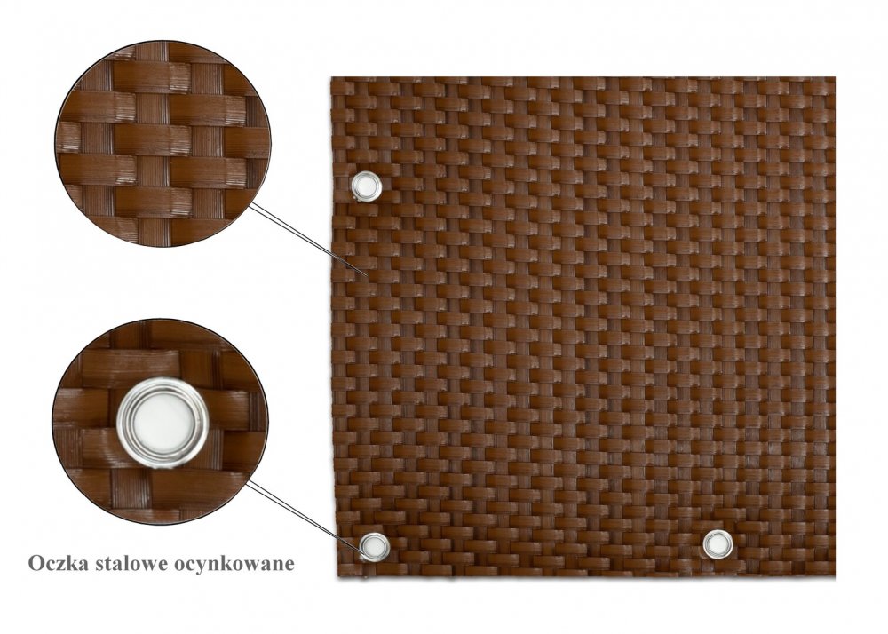 Tato ratanová stínící rohož má už nainstalována oka pro uchycení. Stínící rohož je vyrobena z polyratanových pruhů a slouží ke zvýšení vašeho soukromí. Svým designem se hodí nejen k zastínění, ale také k zneprůhlednění či dekoraci plotu i balkonů. Díky svým vlastnostem je vhodná jako ochrana proti hluku, prachu, větru a v neposlední řadě jako ochrana před zvědavými pohledy kolemjdoucích.