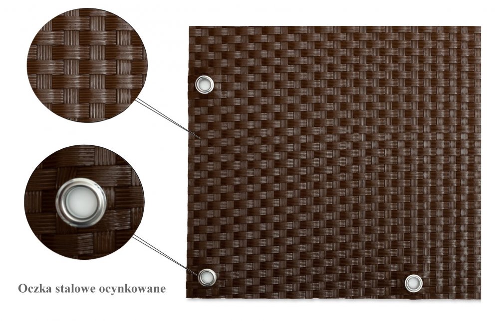 • Plastová ratanová stínící rohož "umělý ratan" s oky (tmavý ořech) - délka 500 cm a výška 90 cm