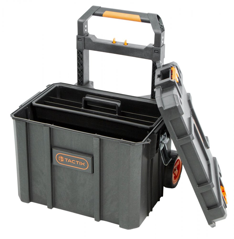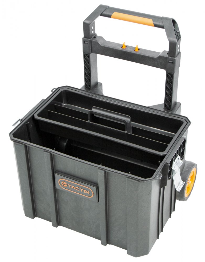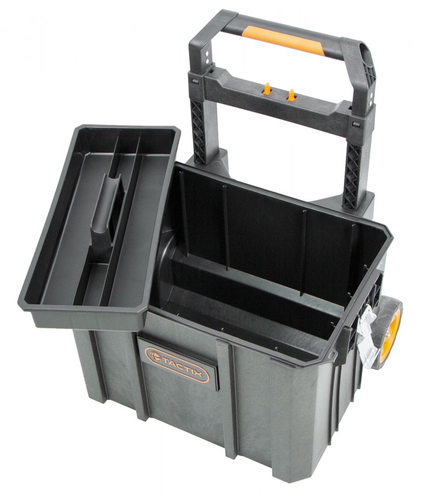 Tento plastový box na kolečkách značky Tactix je ideální pro efektivní skladování a přepravu nářadí.