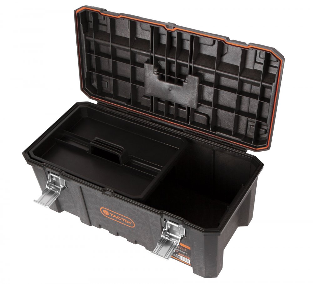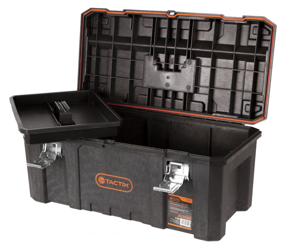 Vodotěsný plastový kufr od značky Tactix o rozměrech 662 x 334 x 290 mm.