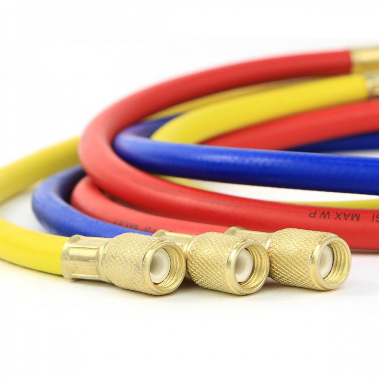 - K připojení ke klimatizaci slouží 1 500 mm dlouhé hadice ve třech barvách pro lepší orientaci.