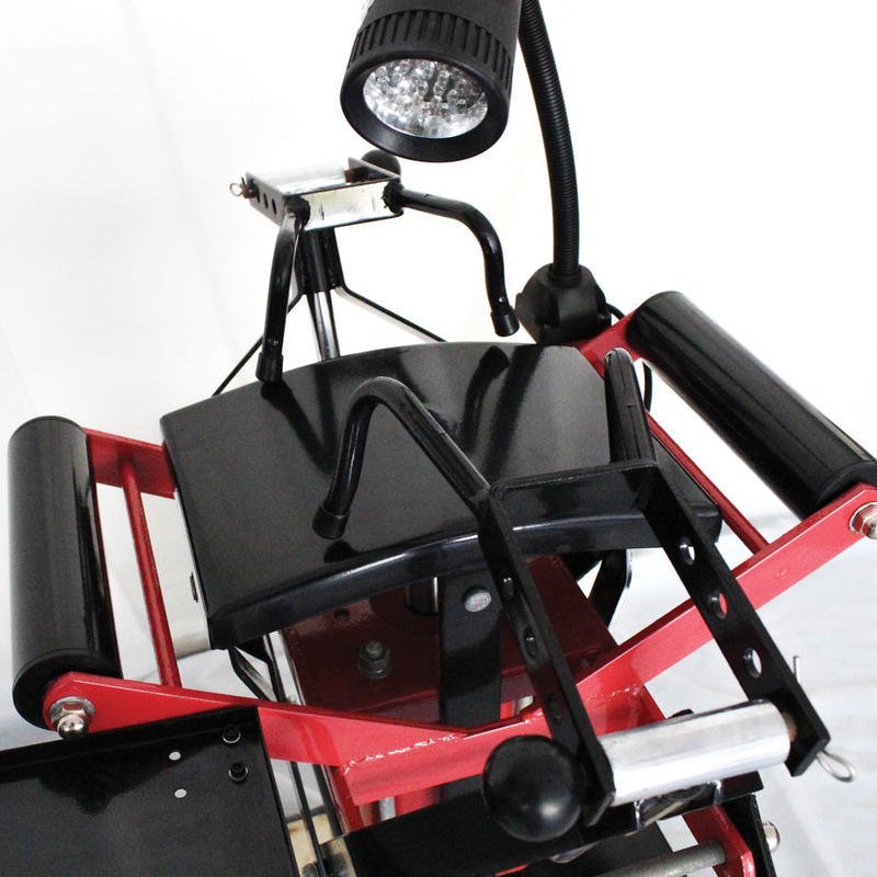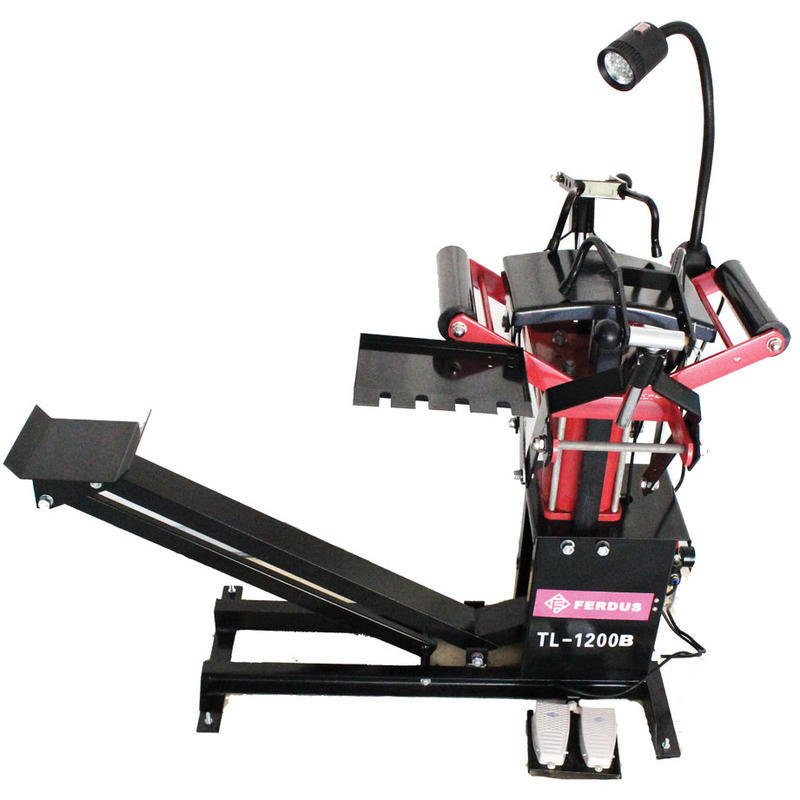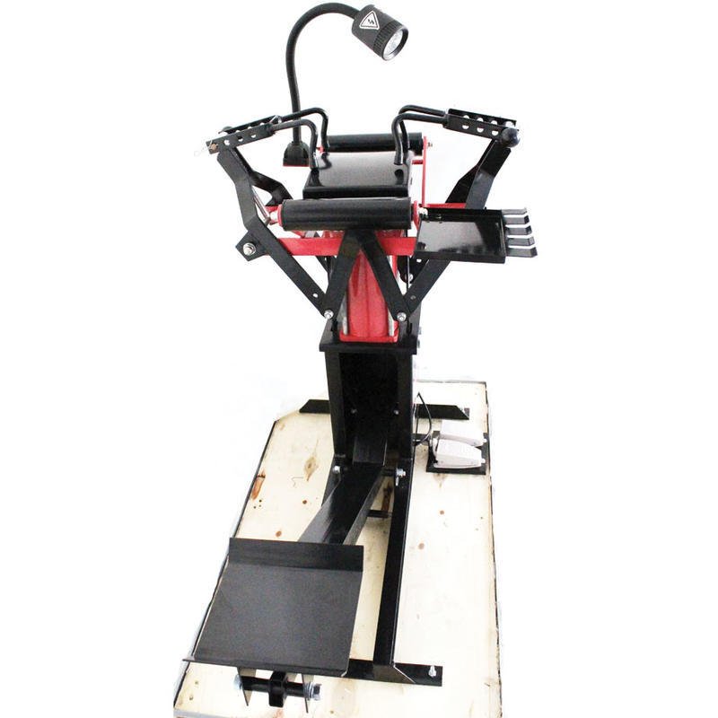 Zapojením zařízení do elektřiny se aktivuje funkce ovládacích nožních pedálů a nastavitelné svítilny pro osvětlení vnitřní části pneumatiky.
