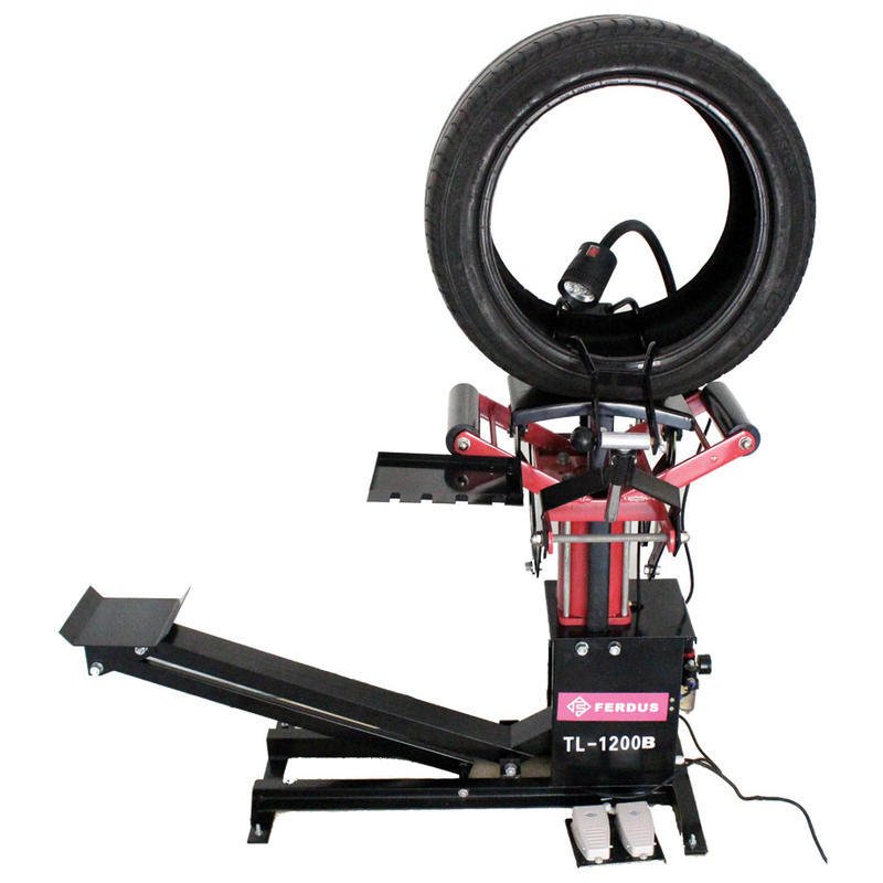 Pneumatika se musí umístit mezi dva válečky. V místě, kde má být provedena oprava pneumatiky se zachytí nastavitelnými roztahovacími rameny o patky pláště.