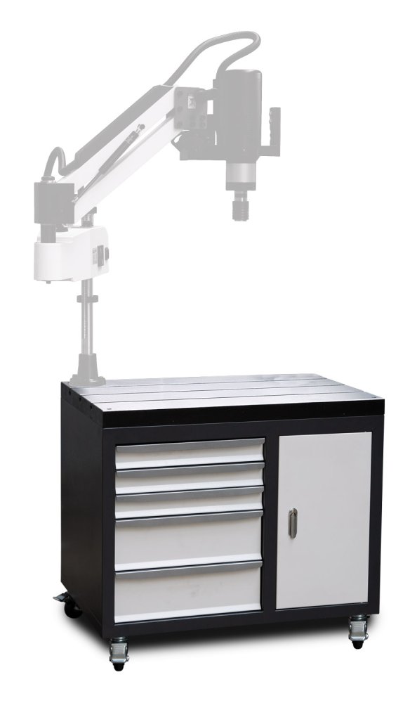 Upínací stůl s T-drážkami o šířce 16 mmRobustní podvozek se čtyřmi otočnými kolečky