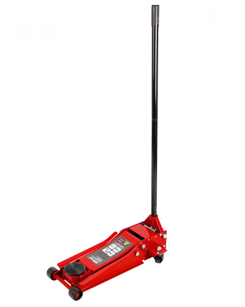 Hydraulický hever, pojízdný, nízkoprofilový. Rozsah zdvihu 80 - 508 mm, nosnost 2,5 t, dva písty, rozměry 650 x 320 mm, průměr sedla 100 mm. Kovová konstrukce, dlouhá rukojeť. Produktová řada PROFESIONAL. Celý popis