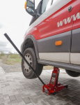 Vysoký zdvih heveru dokáže na místo jen jednoho kola zvednout celý bok osobního automobilu a ušetřit tím čas při přezouvání.