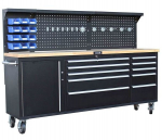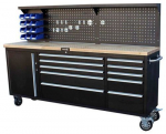 Robustní dřevěná pracovní deska o rozměru 2134 x 486 mm poskytuje dostatek prostoru pro práci a možnost připevnění svěráku.