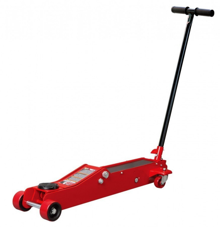 Nízkoprofilový zvedák 3t s prodlouženou základnou, rozsah zdvihu 140 - 525 mm, hydraulický pohon. Pogumované sedlo, pedál pro rychlý zdvih, otočná kola, obouruční madlo. Bezpečnostní ventil proti přetížení.
