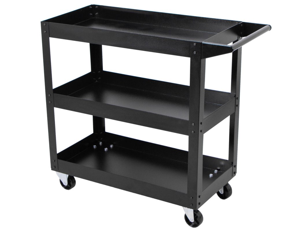 Praktický dílenský vozík s kovovou konstrukcí nabízí dostatek prostoru pro uložení nářadí.