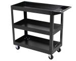 Obsahuje 4 plastová kolečka průměrem 75 mm a 3 police tloušťky 0,8 - 1 mm pro větší flexibilitu a boční madlo.