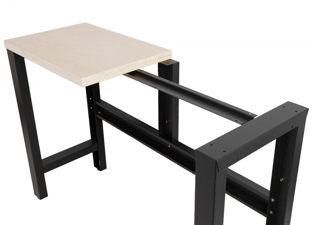 Stůl tak lze zakomponovat a spojit přímo se sestavou nábytku a díky volnému spodnímu prostoru lze pod něj také uskladnit speciální dílenský vozík.