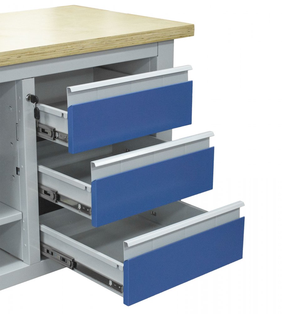 - 3 zásuvky s kuličkovými ložisky a skříňka - vše uzamykatelné!