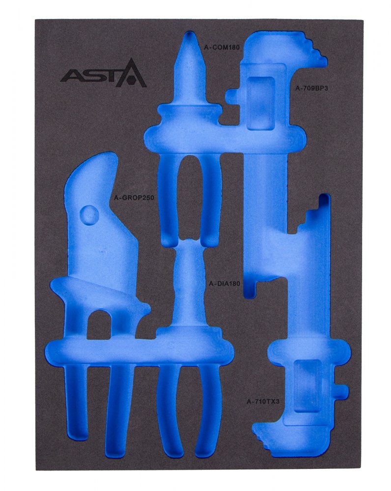 Prázdná pěnová vložka pro kleště, imbusy a torxy. Vložka najde využití při organizaci vašeho nářadí v dílenských vozících nebo pracovních stolech.