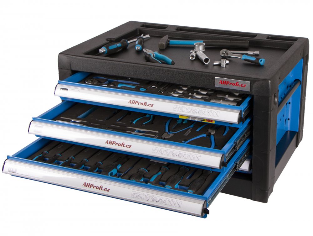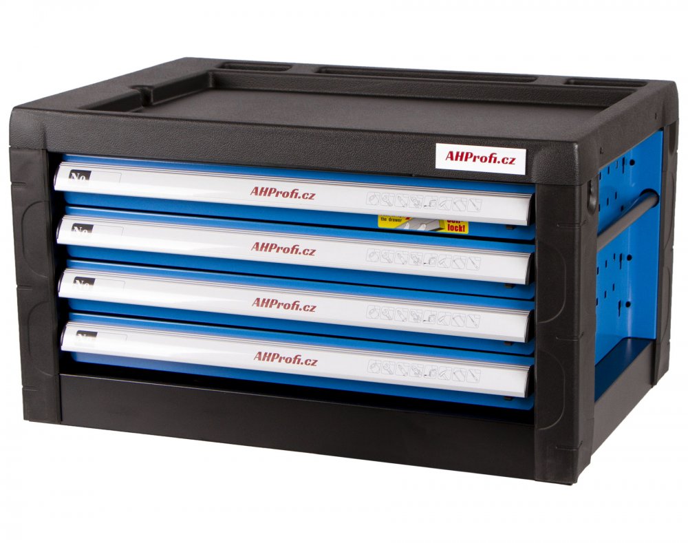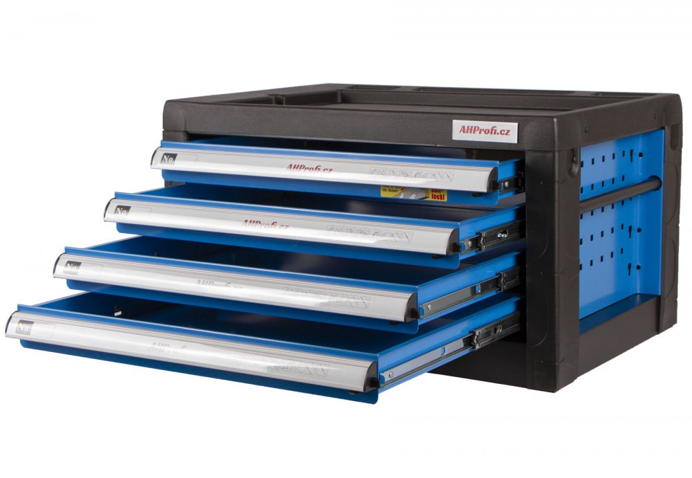 Skříňka má 4 zásuvky, do kterých se vejde spoustu různého nářadí.