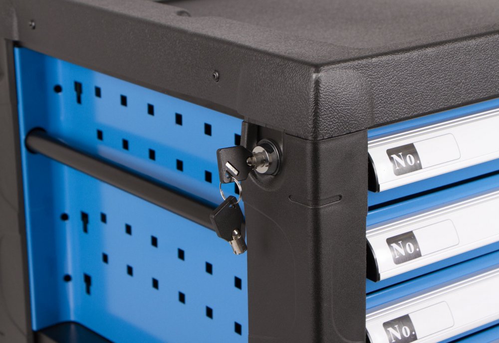 Pro zamezení přístupu nepovolaným osobám k nářadí využijete zámek na boční straně skříňky k uzamknutí všech 4 zásuvek naráz.