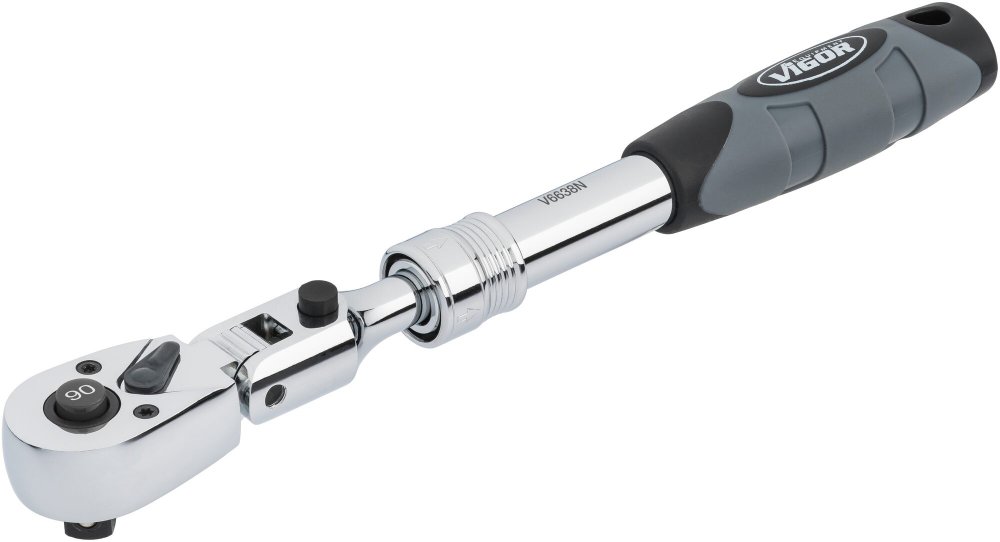 Teleskopická ráčna určená pro precizní utahování a povolování šroubových spojů v dílně i servisu, vhodná pro práci v omezeném prostoru díky kloubové hlavě.
