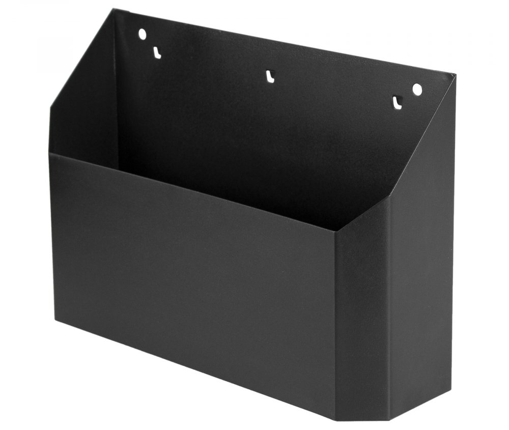 Přihrádka na dokumenty nebo prospekty je určená pro děrované desky s roztečí 38 x 38 mm. Připevněním na perforovaný panel lze rozšířit úložný prostor také pro sestavy dílenského nábytku, dílenské vozíky s nářadím i bez nářadí, pracovní stoly i policové regály.