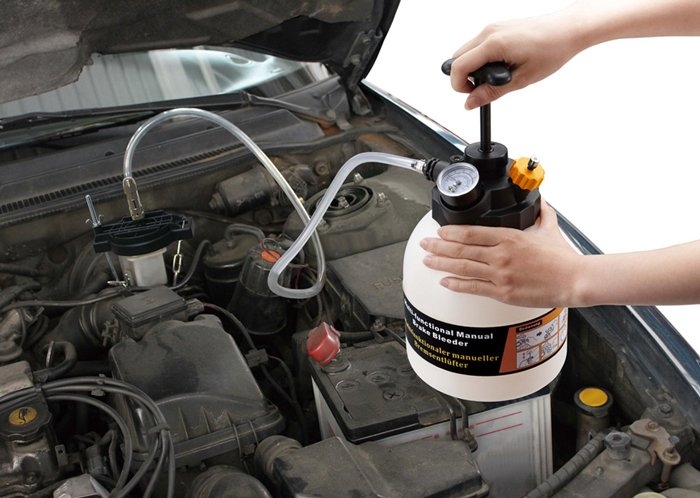 - praktický přístroj / sada pro odvzdušňování brzdových a spojkových systémů