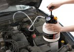 - Euro adaptér / uzávěr se našroubuje na hlavní brzdový válec a pak spojí hadičkou s přístrojem naplněným novou brzdovou kapalinou, pak se pumpováním zásobní nádržka natlakuje a čerstvá brzdová kapalina vytlačuje starou ze systému přes odvzdušňovací šroubky postupně na všech 4 na kolových brzdových jednotkách, na odvzdušňovací šroubek se vždy připojí hadička s nádobkou pro vytlačovanou brzdovou kapalinu