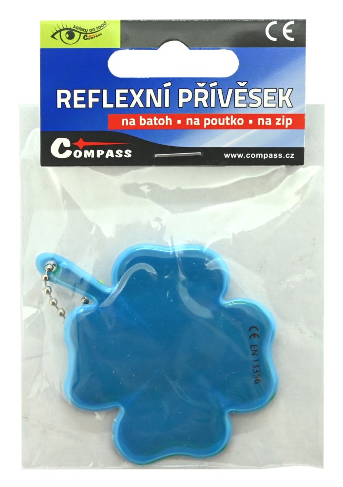 Reflexní přívěšek se závěsem, vhodné k upevnění na oděv, na školní brašnu, na batoh, na kapsu, na zip apod.