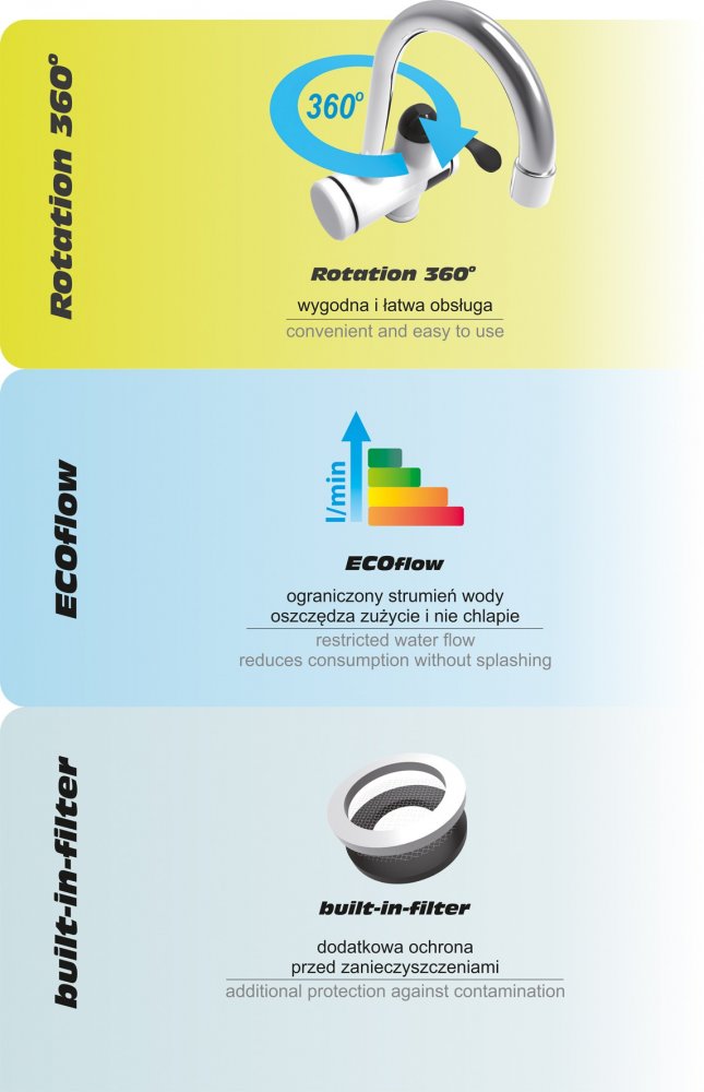Průtokový ohřívač o výkonu 3000W, umožňuje ohřát vodu na 60 ° C za 5 sekund. Snadno čitelný LED displej, který umožňuje kontrolovat teplotu vody.