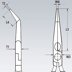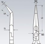 Vhodné pro jemné uchopování a stříhání. Zašpičatělé půlkulaté čelisti. Plochy čelistí ozubené. S břity pro měkký, středně tvrdý a tvrdý drát. Břity doplňkově induktivně tvrzené, tvrdost břitů asi 61 HRC. Vanadová elektroocel- kovaná, kalená v oleji.