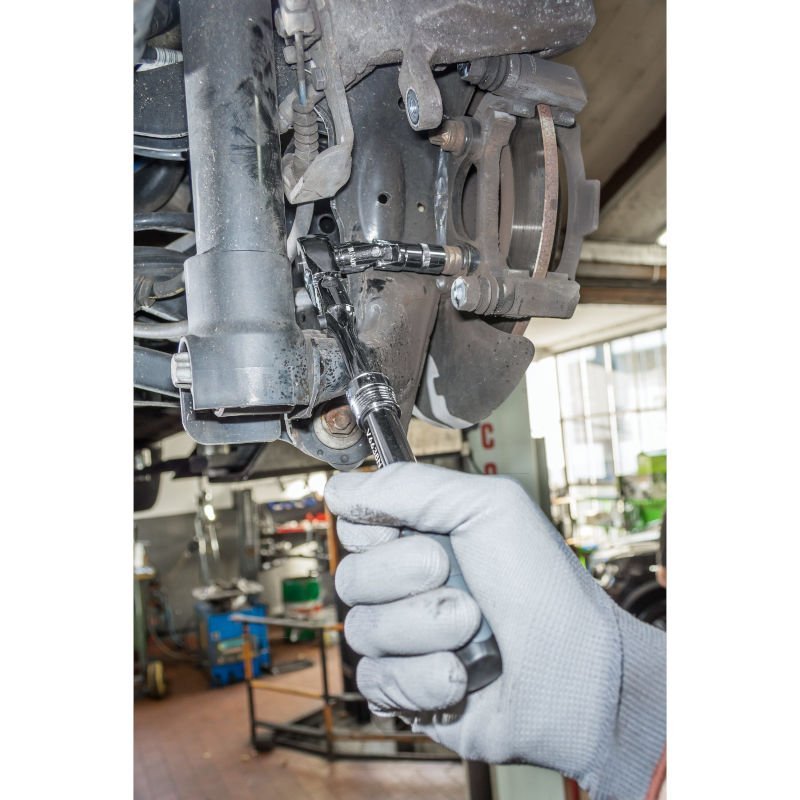 Přepínací kloubová výsuvná ráčna, čtyřhran 3/8", s hlavou otočnou o 180°.