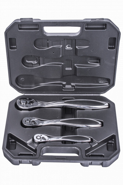Tato 3dílná sada ráčen je určena pro práci s nástrčnými klíči v dílnách, autoservisech nebo domácím prostředí.