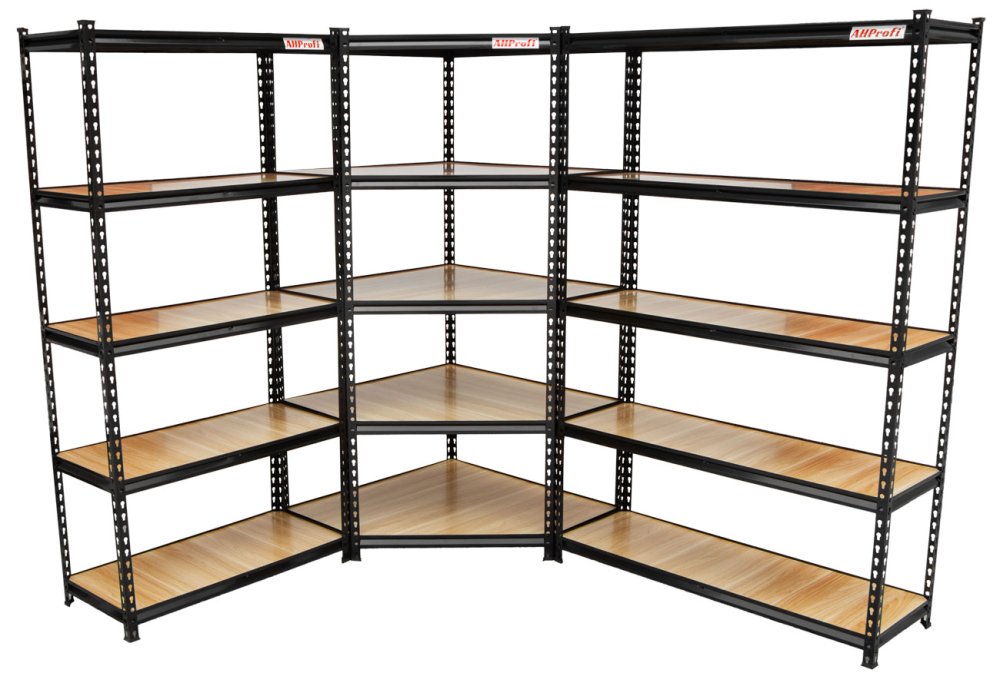 Tento regálový systém je konstruován z kvalitní oceli pro maximální odolnost a stabilitu. Konstrukce z 0,8 mm oceli má oproti běžným regálům z 0,6 mm oceli vysokou nosnost až 265 kg na polici. Police jsou výškově nastavitelné a vyrobeny z pevných MDF desek s hladkým povrchem. Součástí každého regálu je 5 polic.