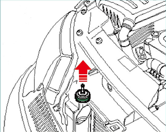 Reverzní kladivo pro snadnou demontáž zátky chladiče.
