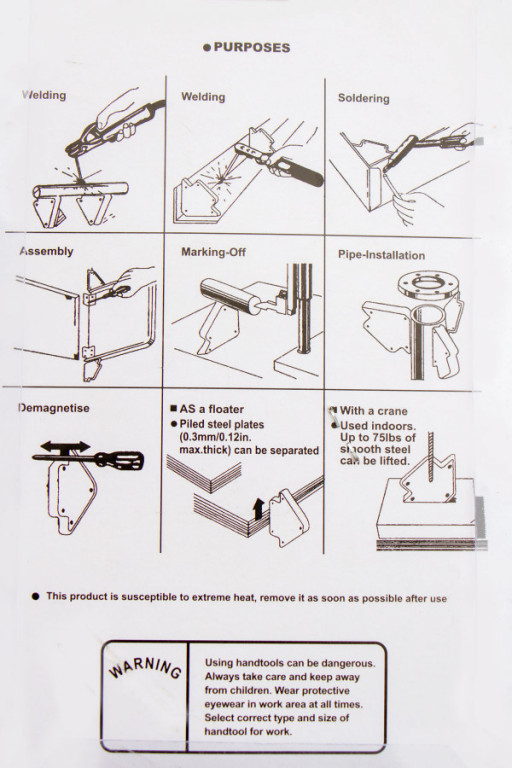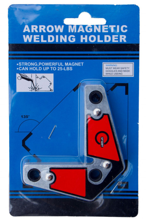 Konstrukční permanentní rohový magnet k dočasné fixaci kovových předmětů pro přesné svařování pod úhly 60, 90 a 120°. Nosnost 9 kg.