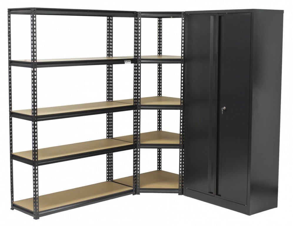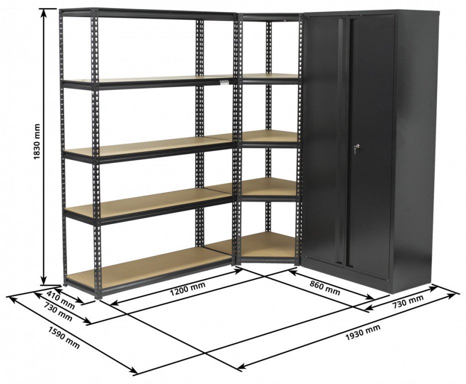 Sada policových regálů a dílenské skříně najde široké využití například v domácnosti, technické místnosti, dílně nebo garáži, ale také ve skladech nebo obchodech.