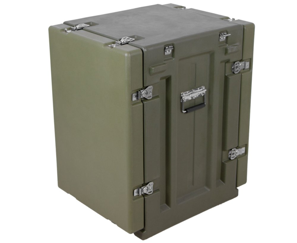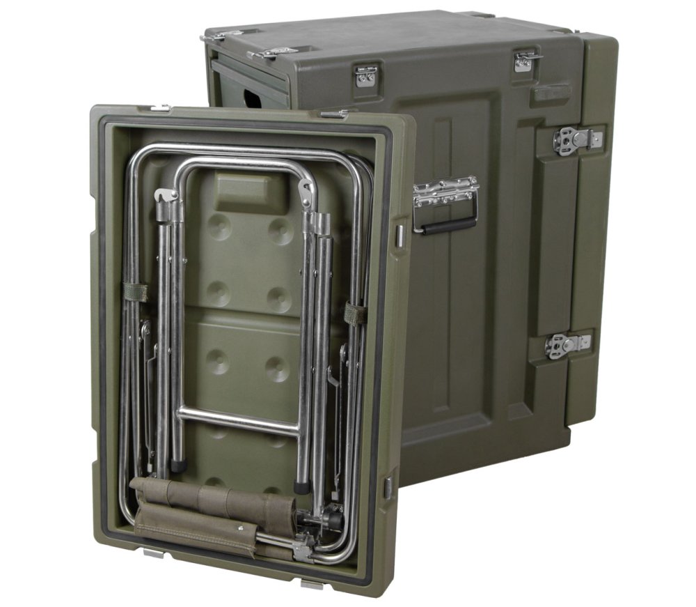 Tento jednodílný administrační stůl lze složit do jednoho odolného přepravního kontejneru, aby se stal během okamžiku mobilní.