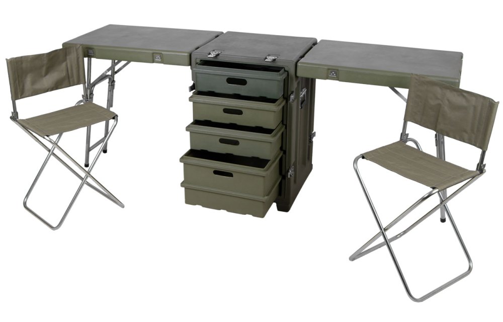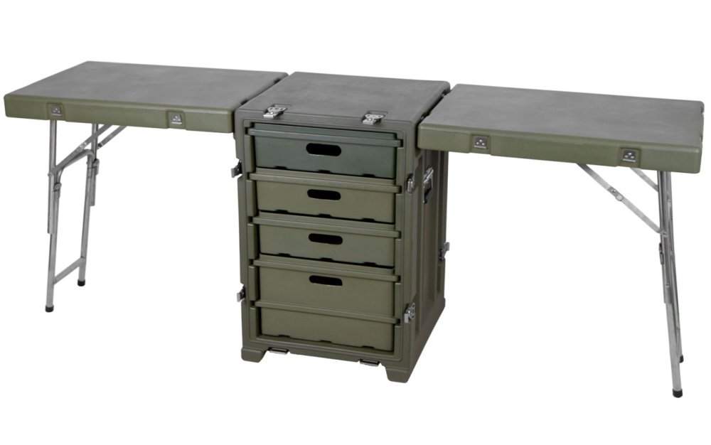 Rozkládací stůj je navržen pro použití ve vojenských táborech, na staveništích, v aplikacích nouzové pomoci a v dalších venkovních prostředích pro všeobecné použití.