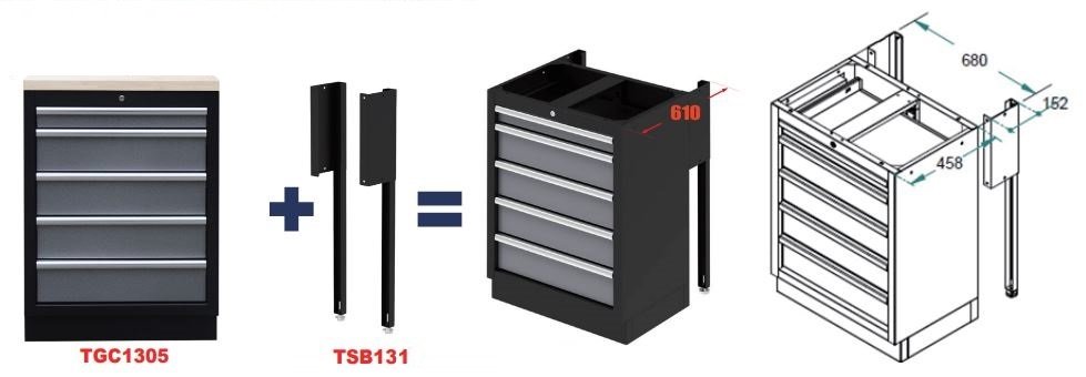 Rozšiřte své možnosti díky prodlužovacím sloupkům TSB131, které umožňují zvětšit hloubku vaší dílenské sestavy.