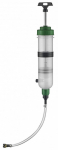 Ruční plnička a odsávačka nafty a benzínu typu injekční stříkačka s obsahem zásobníku 1,5 l.