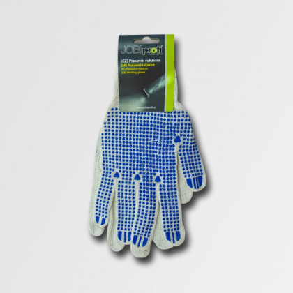 Pětiprsté rukavice Plover, pletené, polyesterové rukavice s modrými protiskluzovými terčíky PVC na dlani a prstech. Pružný náplet na zápěstí.Vhodné všeobecně pro manipulaci se suchými, neagresivními materiály.