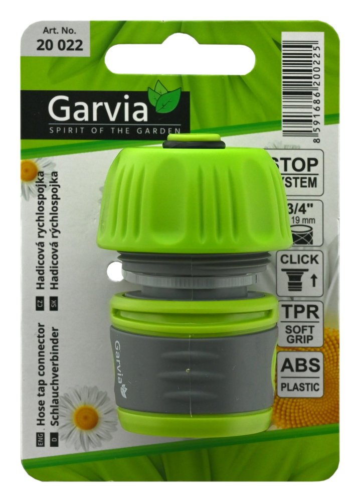 Rychlospojka, se STOP systémem, je určena pro snadné připojení zahradní hadice o průměru 3/4" a umožňuje její propojení s dalším příslušenstvím, jako jsou postřikovače, pistole a další zařízení opatřené adaptérem CLICK.