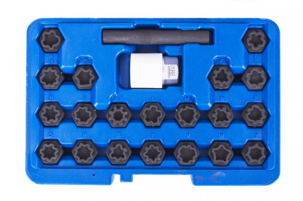 Sada 22 ks klíčů na kola VAG s bezpečnostním profilem je základem pro sejmutí šroubů a kola bez jeho poškození.