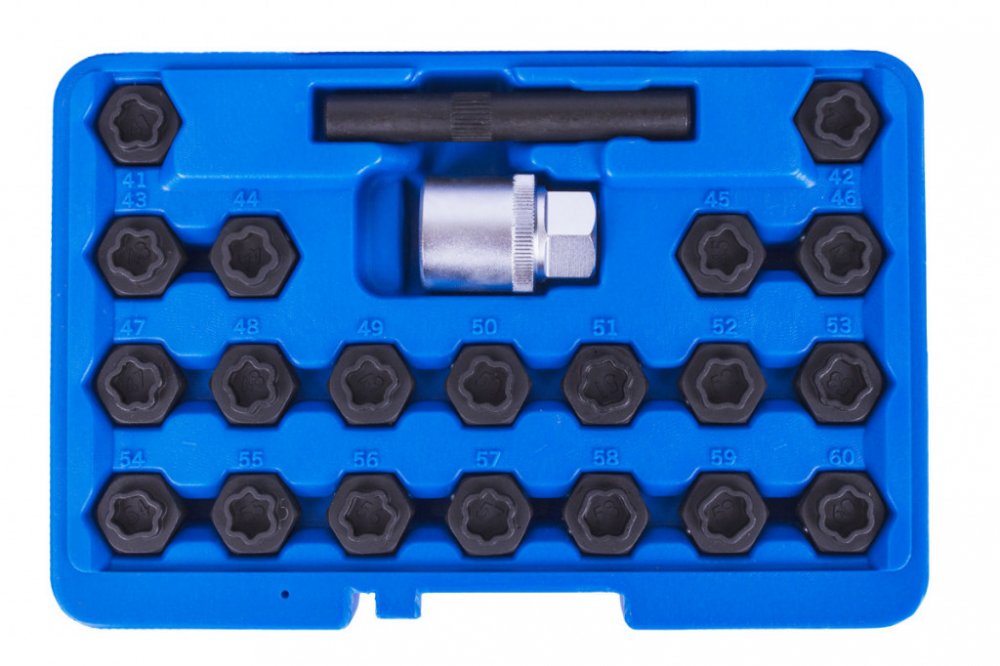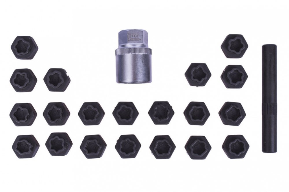 Sada 22 ks klíčů na kola BMW s bezpečnostním profilem je základem pro sejmutí šroubů a kola bez jeho poškození.